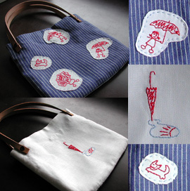 | よくおじゃまさせていただいているMacoさんのサイト SWEET-SPANGLED&SWALLOWで、先日オリジナルバッグコンテストが催されました。 で、私も身の程知らずは百も承知、無謀上等でエントリーいたしました。(^_^;) テーマは「春夏のお出かけにもって歩きたいバッグ」。 私がこのテーマを見て思いついたのは、「春と夏」→「その中間は梅雨」という安易な連想でこんなのを作りました。 ![]() 当所考えていたのは、 表側:窓の外は雨。窓枠に背伸びをしてとりついて外を眺めている少女。足下に昼寝の犬。 裏側:雨があがって梅雨の光るあじさいと閉じられた傘。その前に女の子と犬の足跡が点々と。 ・・・という図案。 どう考えてもこんな細かいシチュエーション、私の画才では無理だろうと、はじめに気づけよ>自分 自分のセンスと画才とスキルが徒党を組んで私に妥協を迫ってくる〜〜!とわらわらしながら、なんとかバッグ完成。 1票も入らなかったらどうしようかとドキドキしながら投票期間を迎えました。 嬉しいことに心優しい方々が票を投じてくださり、涙がちょちょぎれそうでした。 こんな素敵な企画を立てて下さったMacoさん、そして企画を盛り上げて下さった参加者、投票者の皆様、 本当に得難い経験をさせていただきました。心よりお礼申し上げます。 |