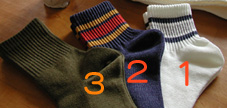 | 子供達をつれて買い物に行きました。 ふと「靴下3足1000円」の文字が目に留まり、子供に好きな靴下を選ばせました。 で、息子のチョイスがこれ。 ![]() 1、2はともかく・・・3はなんなんだ、そのおっさんくさい色は。 しかもこれが一番のお気に入りのようです。 我が子ながら・・・息子のシュミはようわからん。 |