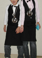 | 息子「おかーちゃん、○くんと一緒の英語習いたい。」 ○君というのは、最近息子と仲のいい幼稚園のポケモン友だちです。 ○君は同じ組のお母さんがやっている英会話教室に通っています。 お友達が中心の小さな教室で、お月謝も激安。 相変わらず男好きな息子の動機に不純な物を感じないではない(笑)ですが、 英語に親しむいい機会かもしれない。 (なんといってもお月謝激安だし。) というわけで、その英会話教室をやっているおかあさんにまだ生徒数に空きがあるか聞いてみました。 「ひとりなら空きがあるからいいよ。そしたら明日のハロウィンもおいでよ♪」 おお、空きがありましたか!ありがたや。 ・・・しかし、その後になんか言いませんでしたか? 「・・・あ、明日?」 「お菓子を人数分用意してね。お姉ちゃんも連れておいで。仮装は・・・なんかある?」 「な、ないっす。なんもねえっす。」 というわけで、その夜3時までかかってこんなん作りました。 ![]() 一応ソムリエのつもりです。 その日さえ持てばいいので、端の始末もなんもしていません。帰るころにはほつれ糸がびろびろしていました。 超てきとーに作った割にはなんとか様になっていました。 しかし、ソムリエってハロウィンの仮装に向いている題材だったのか?やっぱり妖精とか魔法使いとか、そんなんと違うのか? と、帰ってから気が付きました。(遅過ぎ) |